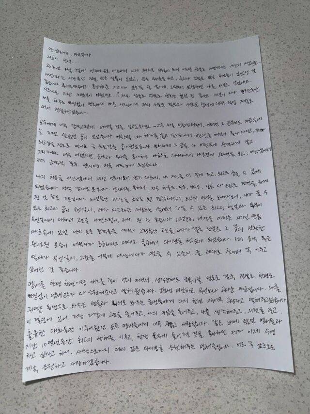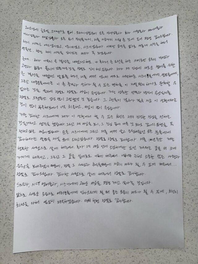 [전문] SM·NCT 떠나는 마크, 자필 편지 "죄송하고 마음이 무겁습니다" [MD이슈]
