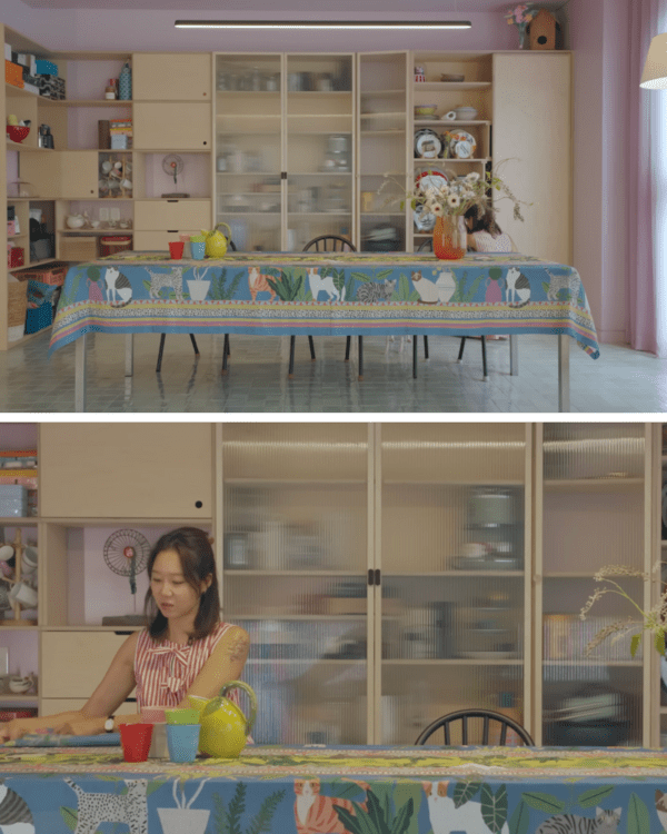 유럽산 천연 리넨 원단만을 고집하는 라이프더화원. 내구성이 뛰어나 오래도록 사용할 수 있으며, 시간이 지날수록 특유의 빈티지한 멋이 더해진다. 특히 공효진이 선택한 이 식탁보는 파스텔 톤의 푸른 배경 위에 다채로운 모습의 고양이들이 그려져 있어 유쾌한 무드를 연출한다. 주방을 새롭게 꾸미고 싶지만 큰 가구를 교체하기엔 망설여진다면 식탁보를 활용하는 걸 제안한다.