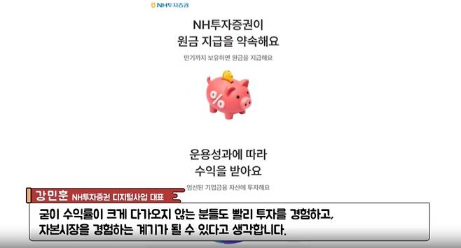 NH투자증권이 IMA 사업자 자격을 얻기 위해 지난해부터 많은 노력을 해왔습니다. 유상증자도 하고, 상품에 대한 연구, 플랫폼에 대한 연구도 시간을 들였습니다. 저희는 1호 상품부터 엄청난 수익을 내겠다는 목표를 갖고 있지 않습니다. 핵심은 투자 저변 확대에 있는데요.