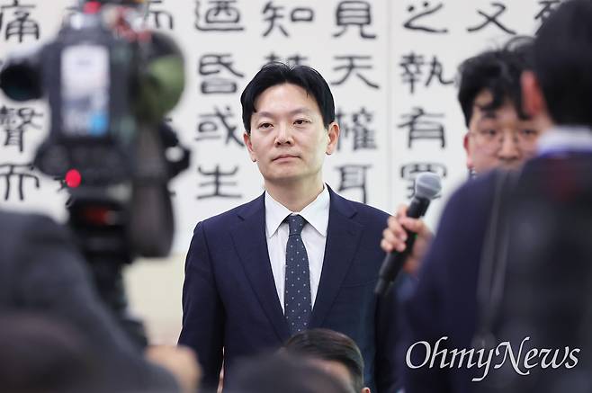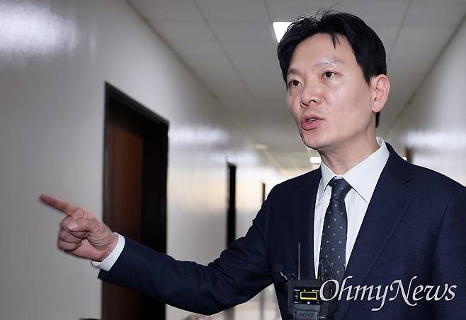 | ▲ 억울함 토로하는 박상용 검사 증인 선서를 거부해 퇴장 조치 당한 박상용 검사가 3일 서울 여의도 국회에서 열린 '윤석열 정권 정치검찰 조작기소 의혹 사건 진상규명 국정조사특별위원회(조작기소 국조특위)' 전체회의가 열린 회의장 밖 복도에서 기자들을 향해 억울함을 토로하고 있다. |