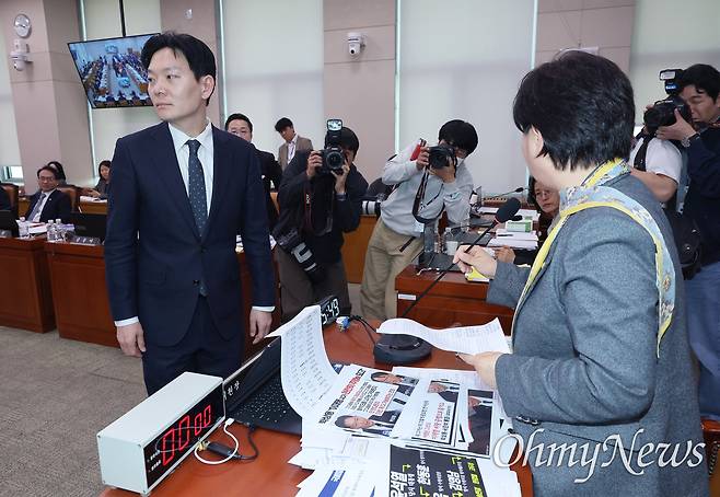 [오마이포토] '선서 거부' 박상용, 마이크 뺏기고 퇴장당해