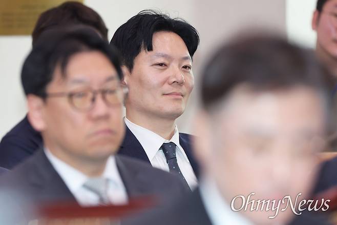 | ▲ 증인 선서 거부한 박상용 검사 수원지검이 쌍방울 대북송금 사건 수사 당시 이화영 전 경기도 평화부지사의 진술 회유를 위해 '연어 술 파티'를 열었다는 의혹의 당사자인 박상용 당시 수원지검 부부장검사가 3일 서울 여의도 국회에서 열린 '윤석열 정권 정치검찰 조작기소 의혹 사건 진상규명 국정조사특별위원회(조작기소 국조특위)' 전체회의에 출석해 증인 선서를 거부한 채 앉아 있다. |