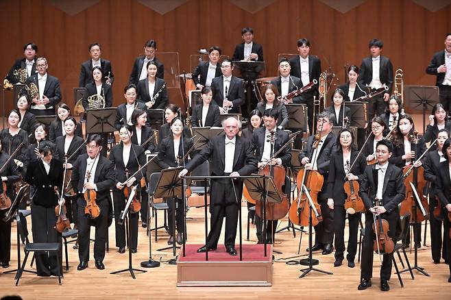 바래니 문은 열의 넘치는 트레몰로로 현악기 전체가 발산하는 생기의 차원을 높였다. 단원 간 소리의 편차가 컸지만 그 덕분에 현악기에서 날 것 그대로의 생기가 느껴지기도 했다. 지휘자는 목관과 금관에 소리를 더 끄집어낼 것을 요구하면서 현악기가 층층이 쌓아낸 울림을 놓치지 않고 이어가려 했다. 2악장에선 현악기가 여린 소리의 층위를 잘게 나누기보다는 음량의 폭을 넓히는 쪽으로 다이내믹을 풀었다. 객원 수석으로 교향곡 연주에 함께한 김한의 클라리넷이 선율에 명징함을 더했다. 3악장에선 현악기와 금관의 민첩한 정도가 꽤 다르게 느껴져 아쉬운 순간이 있었다. 그럼에도 스케르초 악장 특유의 활력을 유지하면서 소리를 층층이 쌓아가는 브루크너 음악의 매력은 여전했다.