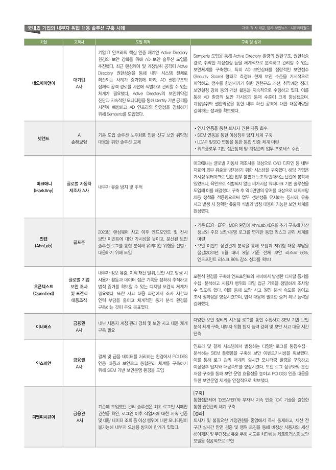 내부자 위협 대응 솔루션 전문기업 집중분석: 네오아이앤이, 안랩, 넷앤드, 위즈코리아, 마크애니