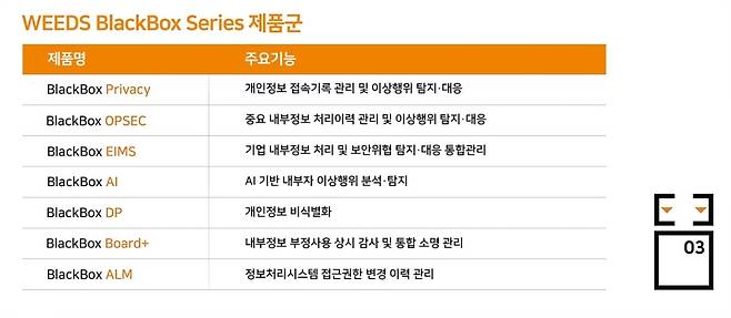 기술 구조 측면에서도 운영 효율성을 고려했다. BlackBox Series는 ERP·그룹웨어 및 DB 등 정보처리 시스템 단위로 데이터 접속 및 처리 기록을 수집하며, 다양한 업무 시스템과 연동이 가능하다.