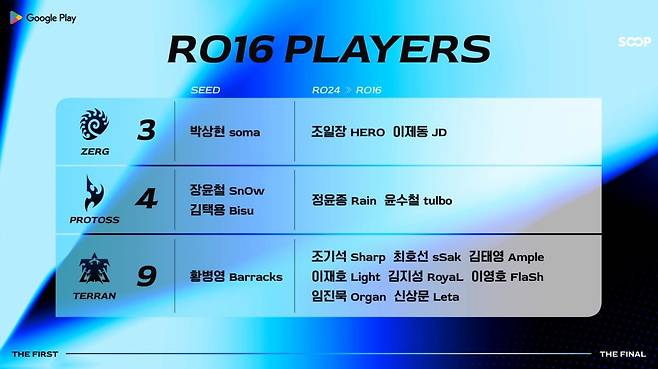 3일 SOOP(각자 대표이사 최영우·이민원)은 6일 오후 7시 구글 플레이(Google Play)가 공식 스폰서로 참여한 '스타크래프트: 리마스터' 대회 'ASL 시즌21'의 16강 조지명식을 진행한다고 밝혔다.