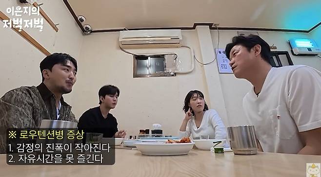 이를 듣던 나영석은 "병명 나왔다. 내가 요즘 딱 저렇다"라며 "스스로 '로우텐션병'이라고 부른다. 잘 돼도 크게 안 기쁘고, 안 돼도 크게 안 슬프다. 감정의 진폭이 작아진다. 혼자만의 시간이 되면 뭘 해야 할지 모르겠다"라고 공감했다.