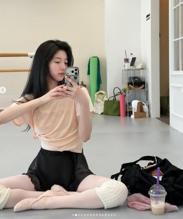 연습에 매진하는 진지한 자태도 눈길을 끈다. 수지는 발레 바에 다리를 가볍게 올리거나 바닥에 앉아 부드럽게 다리를 뻗으며 남다른 유연성을 자랑했다.