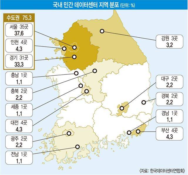 데이터센터의 수도권 쏠림에 따른 우려도 제기된다. 정수종 서울대 환경대학원 교수는 “여름철 폭염 등 전력 수요가 급증하는 상황에서 수도권에 밀집한 데이터센터가 지역 내 대규모 정전을 초래할 가능성도 있다”고 말했다.