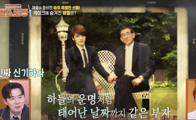 이날 김재중 모친은 남편이자 김재중 부친의 81세 생일이라며 , 아들 김재중에“여자친구 사귀어서 제주도 가족여행을 가자”고 했다. 마침 부친과 생일이 같다는 김재중. 3세때 입양와서 운명처럼 만난 가족인 만큼 태어난 날짜까지 같다고 해 놀라움을 안겼다. 같은 날 생일에 행복은 두 배가 된 것이다.