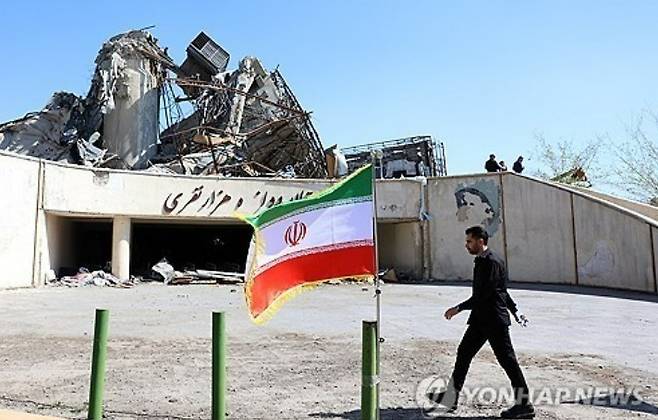[미국·이스라엘 공습으로 부서진 건물 앞을 걷는 이란 관리 (EPA=연합뉴스 자료사진)