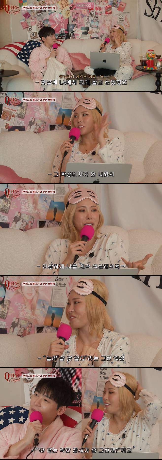 이에 가비는 "옛날에 LA에서 되게 살고 싶었다. 근데 비자가 안 돼서 못 살았다. 학생 비자가 안 나와서. 10년을 미국을 못 갔다. 학생 비자가 안 나오고 이상하게 나를 계속 의심했다. 저 여자 눌러 살 거 같다는 의심을 받았다"고 밝혔다.