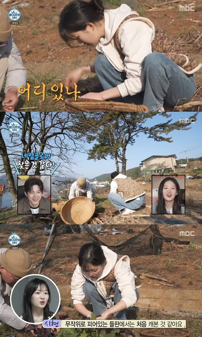 이상희는 김시현을 데리고 통영 바다가 보이는 밭으로 이동, 나물 채취에 나섰다.