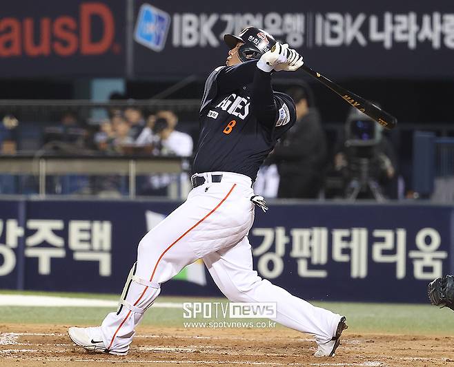 [스포티비뉴스=잠실, 곽혜미 기자] 김경문 감독이 뺨을 어루만지며 건넨 짧은 격려가 침묵했던 노시환을 깨웠다.