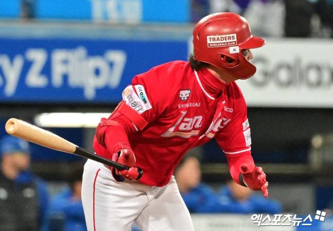이어 두 번째 타석에서는 빠른 발로 장타를 만들었다. SSG는 최정이 3회 선두타자 2루타를 때린 후, 김재환이 볼넷으로 나갔다. 여기서 고명준의 중전 적시타로 5-0으로 도망갔다. 한유섬이 병살타로 물러났지만, 주자는 3루로 갔다.