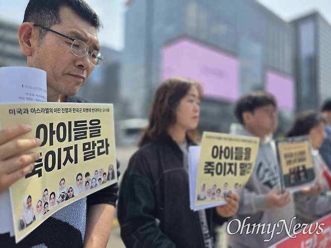조수진 팔레스타인인들과연대하는교사들 공동운영진(현직 중학교 교사)은 "트럼프는 전쟁 중단은커녕, '앞으로 2~3주간 이란을 석기 시대로 돌려놓을 것'이라고 말했다. 대체 얼마나 많은 아이들과 여성들이 더 죽어야 하느냐?"라면서 "이런 전쟁에 한국 정부가 파병한다면 우리 교사들이 가르쳤던 제자들이 피의 대가를 치르게 될 것이다. 이 분노를 교사 서명을 진행했다"라고 밝혔다.