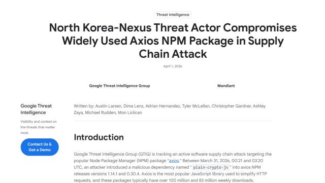북한 배후 해커들의 행보도 거세진 분위기다. 구글위협인텔리전스그룹(GTIG)은 3월31일(현지시간) 북한 연계 해커들이 개인 로그인 정보를 훔치기 위해 '악시오스' 업데이트에 악성코드를 심은 사실을 포착했다고 발표했다. 악시오스는 웹브라우저와 앱이 서버와 정보를 주고받도록 연결하는 소프트웨어로, 한국 또한 활용도가 높아 영향이 있을 것으로 추정된다.