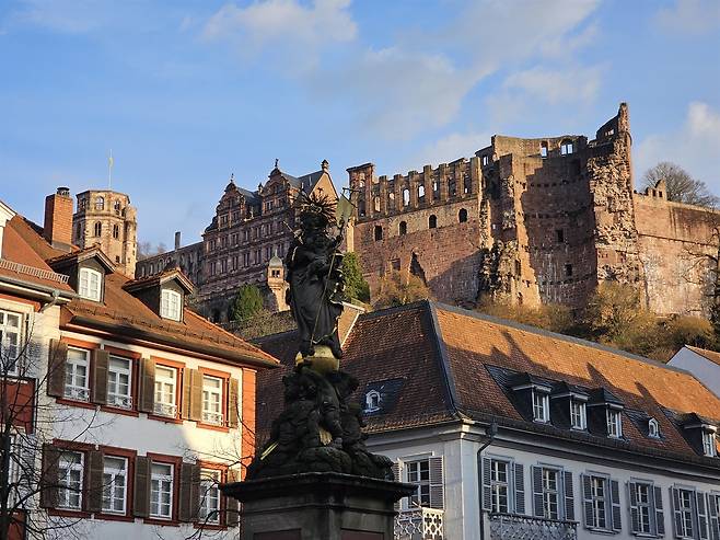 마크 트웨인은 저서 <유럽 방랑기>에서 "하이델베르크성은 폭풍에 시달려 왕관을 잃은 폐허가 되었지만, 여전히 왕처럼 위엄있고 아름답다"라고 표현했다. 콘마르크트 광장에서 바라본 성은 그 문장 그대로였다.
