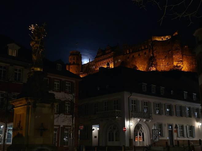 | ▲ 콘마르크트광장과 하이델베르크성의 야경 |