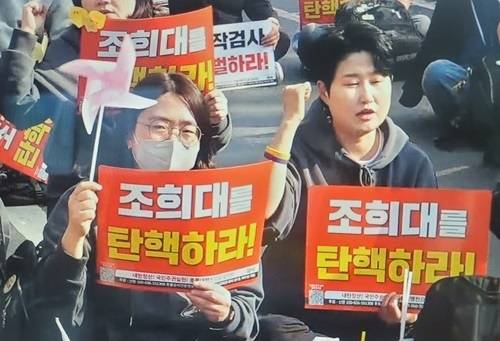 이날 촛불집회 참가자들은 '조희대 탄핵하라' '조작검사 처벌하라' '파병강요 전쟁광 미국을 규탄한다' 등의 손팻말을 들었고 "내란세력 최후보루 조희대를 탄핵하라" "정치공작 회유협박 조작검사 처벌하라" 등의 구호를 외쳤다.