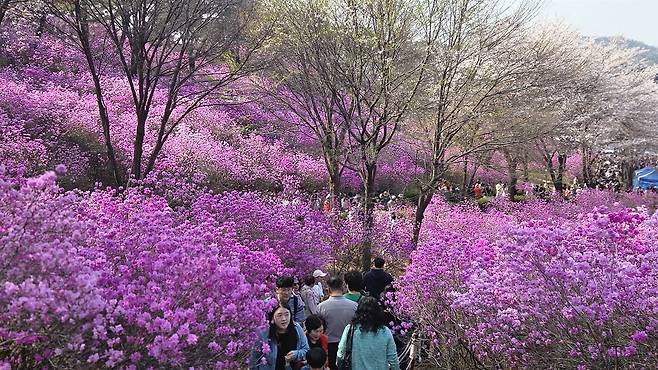 4일 오전 경기 부천 원미산은 연분홍 진달래와 시민 인파로 가득 찼다. 비 예보가 있었지만 날씨가 개면서, 축제장을 찾은 시민들은 산길을 가득 메우며 봄의 절정을 만끽했다.