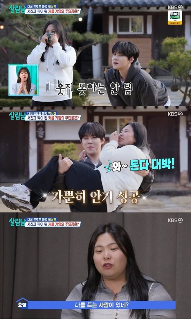 추혁진은 당황했지만 박효정 안고 앉았다 일어나기에 성공해 모두를 놀라게 했다.