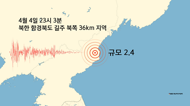 오늘(4일) 밤 11시 3분에 북한 함경북도 길주에서 규모 2.4의 지진이 발생했습니다.