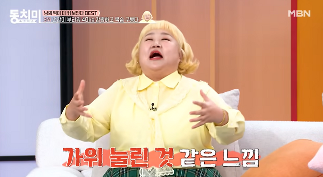 또 감량 전 사진을 공개한 그는 "날씬해 보이게 찍은거다. 사람들은 패딩을 입고 있는 줄 알더라. 불과 2년 전 사진이다. 가만히 앉아서 이야기할 때도 숨쉬기 힘들었다. 잘 때도 누군가에게 눌려있는 기분이었다"고 토로했다.