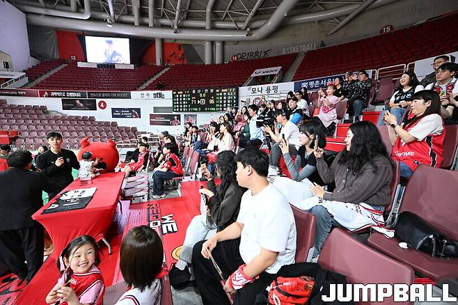 안양 정관장은 4일 안양 정관장 아레나에서 ‘캡틴데이’를 개최했다. 캡틴데이는 2018년 ‘양희종의 캡틴데이’를 시작으로 매 시즌 이어져 왔던 정관장의 전통 가운데 하나다. 이번에도 각 분야 캡틴을 사전 모집, 30명을 초청했다. 당첨된 팬들은 동반자 1명과 함께 참여하는 것은 물론 박지훈 친필이 들어간 엽서, 시계, 응원타월 등으로 구성된 캡틴 굿즈 패키지도 받았다.
