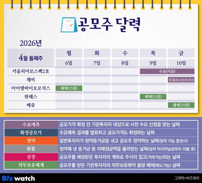 완연한 봄에 접어든 4월 둘째 주, 공모주 일정을 살펴볼게요.