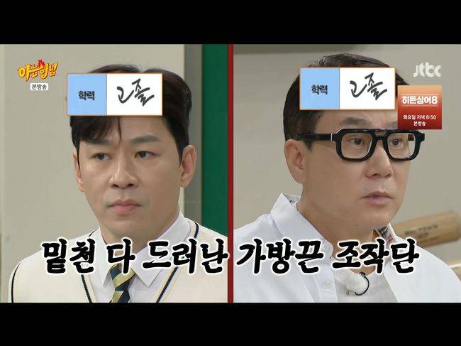 정상훈은 “서울예대 방송연예과다”라며 자신의 학력을 밝혔다. 이상민은 “이 놈의 XX야. 내가 선배다”라며 당차게 나섰는데, 정작 정상훈과 같은 학번이었다. 재미난 사실은 두 사람 다 자퇴를 했기에 사실상 고졸이란 것이다. 신성록, 김건우도 대학은 졸업까지 마치지 못했다. 이수근은 “고졸이 창피한 게 아니잖아. 그런데 너희는 왜 고졸이라고 말을 안 해?”라며 빈정상한 듯 물어 웃음을 안겼다.