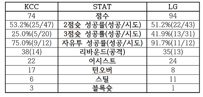 [LG-KCC, 5라운드 맞대결 주요 기록]