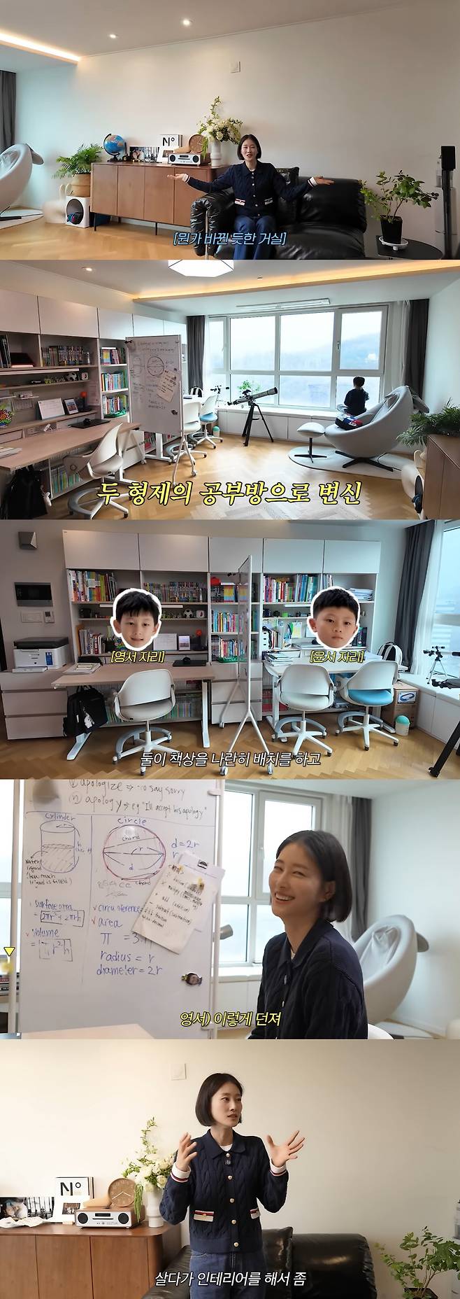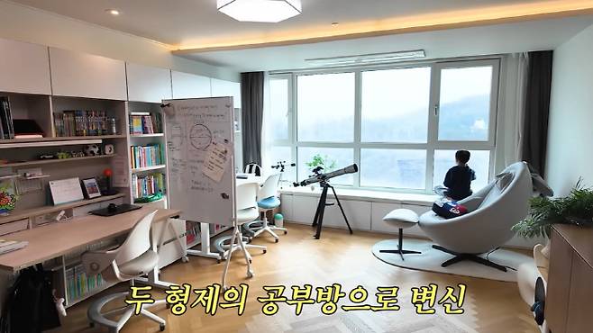 모델 이현이가 두 아들을 위해 공부방으로 바꾼 새 거실 인테리어를 공개했다.