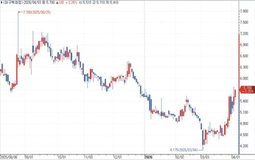 작년 2월 1만1천원까지 올랐던 대구백화점 주가는 올해 3월 4천175원에서 저점을 기록했고, 이후 반등해 지난 3일 5천700원에 마감했다.