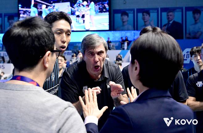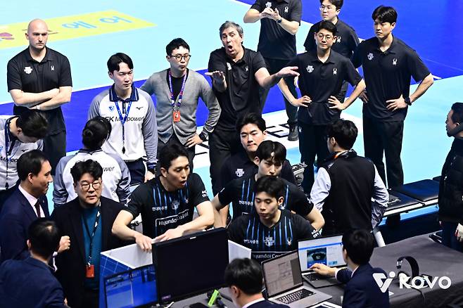 현대캐피탈 선수단은 경기 종료 후 경기 위원과 심판진에 강력하게 항의했다. 김세진 경기운영본부장도 이 자리에 있었다.