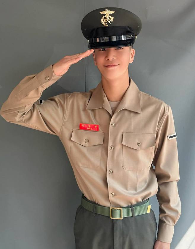 함께 공개된 사진 속 정동원은 해병대 군복을 입고 단정한 모습으로 거수경례를 하고 있다. 짧게 자른 머리와 훈련으로 다소 그을린 피부, 한층 또렷해진 눈빛이 눈길을 끈다. 셀카에서는 한층 성숙해진 분위기와 함께 군인다운 늠름함이 돋보인다.