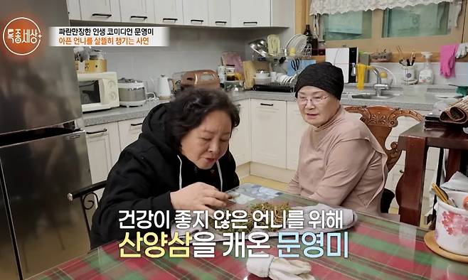 어머니가 떠난 후 13년째 홀로 지내는 문영미는 현재 투병 중인 친언니 문군자 씨 부부를 의지하며 살아가고 있다. 언니를 위해 직접 산삼을 캐오고 보양식을 차리는 등 지극한 우애를 보여준 그는 "모진 풍파를 겪었지만 건강과 바꿨다고 생각하며 버틴다"며 씩씩하게 일상을 지켜내고 있다.