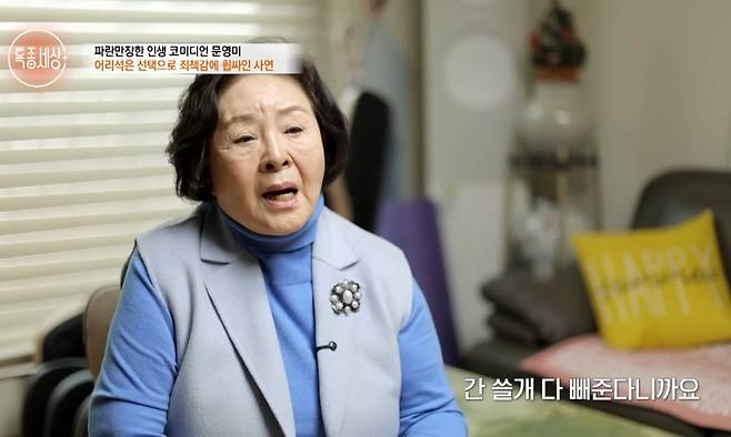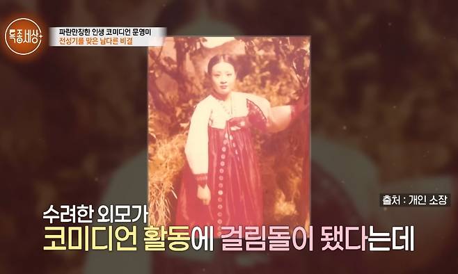 [TV리포트=최민준 기자] 미녀 개그우먼으로 코미디계의 획을 그었던 '대모' 문영미가 파란만장했던 인생사를 고백하며 시청자들의 눈시울을 붉혔다.