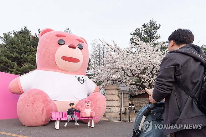 (서울=연합뉴스) 롯데홈쇼핑의 자체 캐릭터 '벨리곰'이 지난 3일 '2026 여의도 봄꽃축제'가 열리는 서울 여의도 윤중로 일대에서 대형 전시와 체험형 콘텐츠를 선보이고 있다. 2026.4.5 [롯데홈쇼핑 제공. 재판매 및 DB 금지]