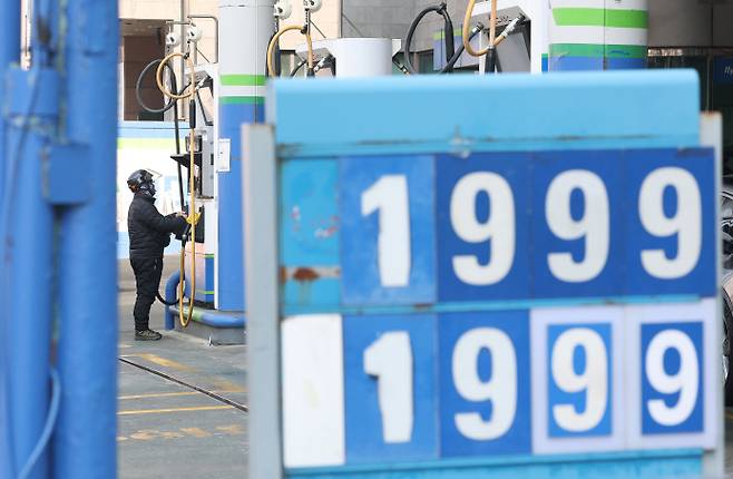 [국제 유가가 다시 오름세를 보인 2일 서울 시내 한 주유소에 휘발유·경유 가격 안내문이 놓여 있다.(사진=연합뉴스)]
