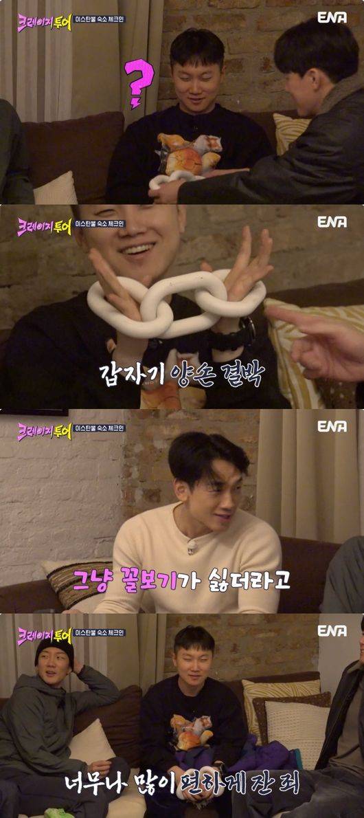 지난 4일 오후에 방송된 케이블채널 ENA 예능 프로그램 ‘크레이지 투어’에서는 튀르키예의 더욱 크레이지해진 2막이 열렸다. 비(정지훈)와 김무열, 빠니보틀, 이승훈은 아파트 약 23층 높이의 크레인 번지에 도전했다.
