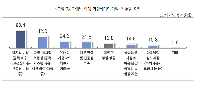 연간 10t 미만인 소량 화학물질을 제조·수입하는 중소기업들이 매출 대비 높은 등록비용에 경제적 부담을 느끼는 것으로 조사됐다.