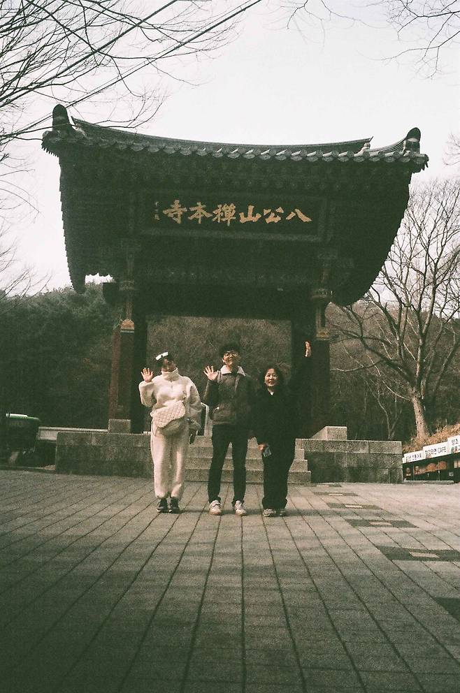 | ▲ 올림푸스 trip35촬영 일주문 앞 지인들과의 단체 사진 - 찌이익, 촥. 팔공산의 공기를 한 프레임에 담았던 시작점. |