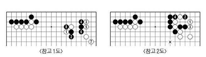 백46에 먼저 붙이고 48에 밀었다. <참고 2도>처럼 순서가 달라지면 백'x'를 선수로 둘 기회가 없다.