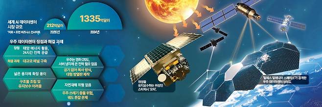 데이터센터 가동에 필요한 전력 확보도 과제다. 우주에서는 태양광을 활용할 수 있지만 이를 대규모 전력으로 전환하는 데는 한계가 있다.