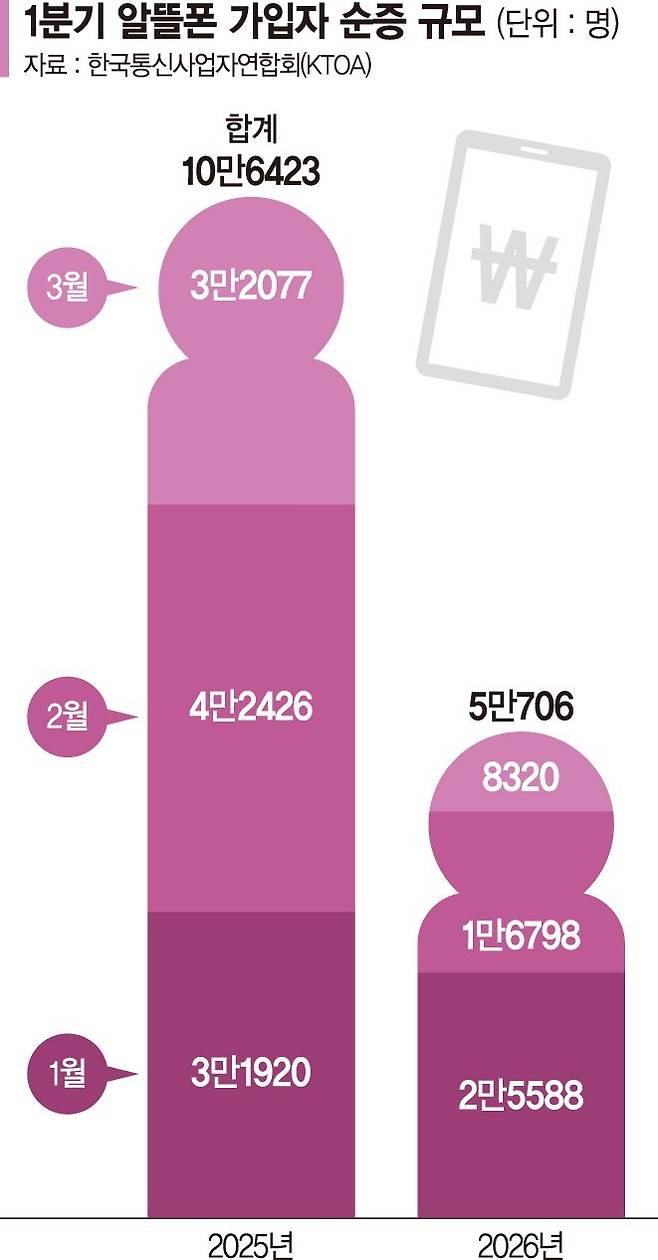알뜰폰 인기 한물갔나… 1분기 가입자 순증 규모 '반토막'