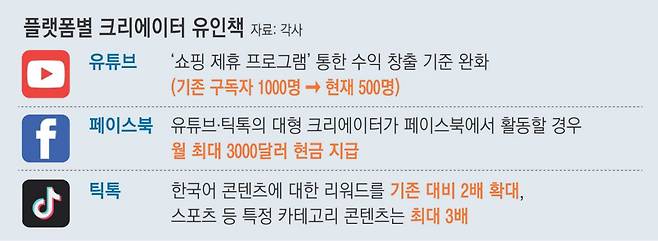 콘텐츠 크리에이터들의 영향력이 커지자 이들을 확보하기 위한 플랫폼 간 쟁탈전이 치열해지고 있다. 수익 창출 문턱을 대폭 낮추는가 하면, 플랫폼 이동을 전제로 ‘이적료’를 지급하는 유인책까지 등장했다.