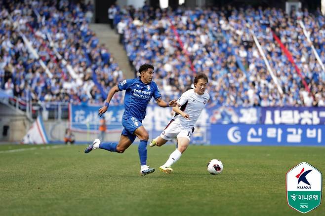 수원은 5일 수원월드컵경기장에서 열린 충북청주와의 '하나은행 K리그2 2026' 6라운드에서 0대0으로 비겼다. 개막 후 5연승을 달리던 수원은 첫 무승부를 기록했다. 5경기 연속 무실점을 이어간 것에 만족해야 했다. 수원(9골)은 승점 16점으로 다득점에 뒤져 부산(14골)에 이어 2위로 떨어졌다. 충북청주는 선전을 펼치며 적지서 귀중한 승점 1을 챙겼다.