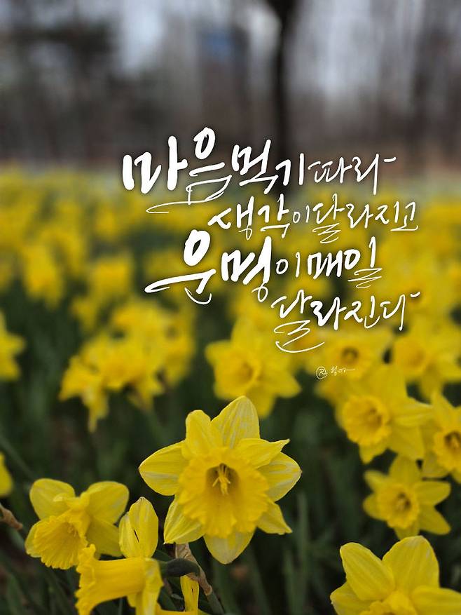 [아침을 여는 명언 캘리] 2026년 4월6일 월요일 김의화 2026. 4. 6. 00:01 음성으로 듣기 음성재생 설정 이동 통신망에서 음성 재생 시 데이터 요금이 발생할 수 있습니다. 글자 수 10,000자 초과 시 일부만 음성으로 제공합니다. 남성 여성 느림 보통 빠름 음성 재생하기 닫기 음성 재생 중지 번역 설정 번역beta Translated by kaka i 한국어 - English 영어 日本語 일본어 简体中文 중국어 Nederlands 네델란드어 Deutsch 독일어 Русский 러시아어 Malaysia 말레이시아어 বাঙ্গোল ভাষা 벵골어 tiếng Việt 베트남어 Español 스페인어 اللغة العربية 아랍어 Italiano 이탈리아어 bahasa Indonesia 인도네시아어 ภาษาไทย 태국어 Türkçe 튀르키에어 Português 포르투갈어 Français 프랑스어 हिन्दी 힌디어 닫기 번역중 Now in translation 글씨크기 조절하기 글자크기 설정 파란원을 좌우로 움직이시면 글자크기가 변경 됩니다. 가 매우 작은 폰트 작은 폰트 보통 폰트 큰 폰트 매우 큰 폰트 가 이 글자크기로 변경됩니다. (예시) 가장 빠른 뉴스가 있고 다양한 정보, 쌍방향 소통이 숨쉬는 다음뉴스를 만나보세요. 다음뉴스는 국내외 주요이슈와 실시간 속보, 문화생활 및 다양한 분야의 뉴스를 입체적으로 전달하고 있습니다. 닫기 인쇄하기 '마음먹기 따라 생각이 달라지고 운명이 매일 달라진다.' /글·캘리그라피=손정숙 Copyright © 중도일보. 무단전재 및 재배포 금지.