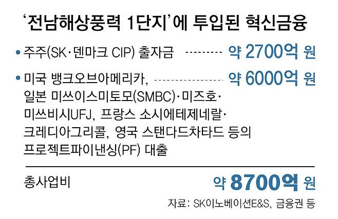 전남해상풍력 1단지는 글로벌 금융사 자금도 대거 유치했다. 1단지 사업 규모의 약 69%인 6000억 원을 마련하는 데 미국(뱅크오브아메리카), 일본(미쓰이스미토모·미쓰비씨UFJ·미즈호), 프랑스(소시에테제네랄·크레디아그리콜) 등 세계적인 금융사들이 참여했다. 일본 미쓰비씨UFJ파이낸셜그룹의 MUFG증권 최영우 한국대표는 “글로벌 금융사들이 대형 프로젝트에 참여한 만큼 앞으로 국내 금융사들도 이런 프로젝트에 관심이 더 생겨 지원을 많이 하게 될 것”이라고 내다봤다.